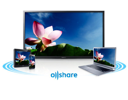 Samsung AllShare umożliwia bezproblemowe udostępnianie zawartości pomiędzy wszystkimi podłączonymi urządzeniami. W ten sposób możesz przesyłać zdjęcia, filmy i muzykę ze smartfona, tabletu, laptopa i aparatu fotograficznego prosto na duży ekran telewizora. Następnie możesz komfortowo oglądać ulubioną zawartość na ekranie swojego Smart TV.