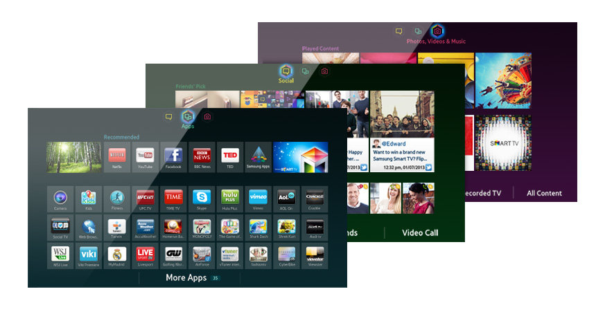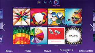 Wejdź w sam środek akcji. Samsung Smart Hub stwarza doskonałe warunki do korzystania z rozrywki na najwyższym poziomie. Gdy masz pod ręką dostęp do aplikacji, filmów i muzyki, samotność nigdy ci nie zagrozi! Za pośrednictwem telewizora Samsung Smart TV możesz korzystać z wielu różnorodnych aplikacji. Bądź w centrum życia towarzyskiego, korzystając z serwisów społecznościowych w ramach Smart Hub, i oglądaj klipy wideo opublikowane przez twoich znajomych w serwisach Facebook czy Twitter. Masz również dostęp do zdjęć, filmów i klipów zapisanych w kompatybilnych urządzeniach marki Samsung, takich jak komputer czy aparat fotograficzny.