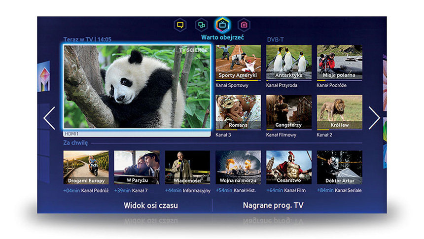 Dzięki funkcji S Recommendation Twój telewizor Smart TV pomoże Ci odnaleźć film lub program telewizyjny, który cieszy się największym zainteresowaniem, co ułatwia wybór spośród ogromnej liczby kanałów dostępnych w telewizji. Rekomendacje programów wyświetlane są zaraz po włączeniu telewizora.