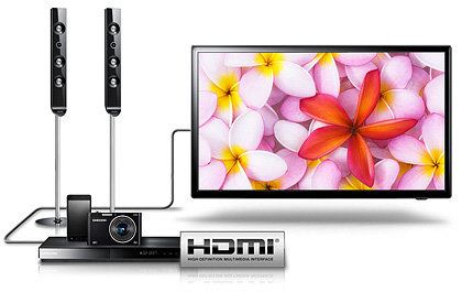 Dzięki czterem wejściom HDMI (High Definition Multimedia Interface) telewizor Samsung przekształci Twój salon w multimedialne centrum rozrywki. HDMI umożliwia szybką transmisję danych cyfrowych w wysokiej rozdzielczości z kilku urządzeń bezpośrednio do telewizora.