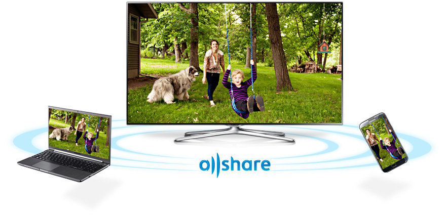 Łatwy dostęp do Twoich archiwów Rozwiązanie Samsung AllShare umożliwia stworzenie domowej sieci bezprzewodowej, w ramach której można udostępniać zawartość zapisaną w kompatybilnych urządzeniach marki Samsung, takich jak komputer czy aparat fotograficzny. Teraz możesz z łatwością przeglądać swoje zasoby, od zdjęć po muzykę, na ekranie swojego Samsung Smart TV.