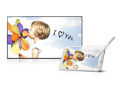 Na nowym telewizorze Samsung Smart TV możesz szybko i łatwo wyświetlać zawartość urządzeń przenośnych. Udoskonalona technologia lustrzanego odbicia ekranu eliminuje potrzebę zmiany źródła sygnału telewizora – wystarczy otworzyć panel powiadomień na urządzeniu przenośnym, wybrać ikonę Screen Mirroring*, a następnie wskazać telewizor. Trzy proste kroki to wszystko, by korzystać z aplikacji, gier i multimediów na pełnowymiarowym ekranie telewizora.