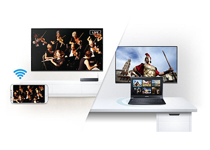 *Ta funkcja jest zoptymalizowana do użytku z najnowszymi smartfonami i tabletami marki Samsung. Kompatybilność może być ograniczona w zależności od modelu, wersji i obsługi takich funkcji, jak AllShare Cast czy Screen Mirroring; prosimy o kontakt podczas zakupu z przedstawicielem serwisu firmy Samsung w celu uzyskania porady odnośnie kompatybilności.