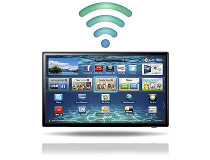 Dzięki wbudowanej sieci bezprzewodowej możesz w pełni wykorzystać całą funkcjonalność telewizora bez podłączania dodatkowych urządzeń zewnętrznych, a także zachowując jego atrakcyjne wzornictwo. Wygodna funkcja „One Foot Connection” bezprzewodowo wykrywa kompatybilne urządzenia, które są umieszczone w odległości nie większej niż 25 cm od telewizora i routera bezprzewodowego.
