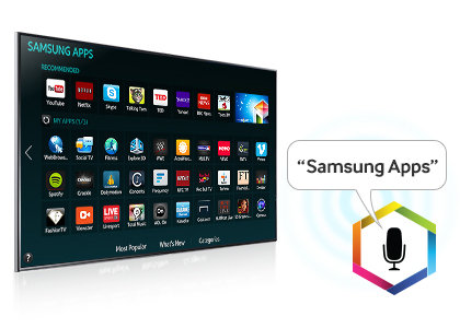 Dzięki najnowszej funkcji interakcji głosowej opracowanej przez firmę Samsung możesz sterować telewizorem i wyszukiwać żądane elementy, wypowiadając proste polecenia głosowe. Poza podstawowymi funkcjami, takimi jak wybór kanału, regulacja głośności i wyłączanie telewizora, zlecisz też bardziej zaawansowane zadania. Obejrzysz film, klikając przycisk Wyszukaj na ekranie i wypowiadając żądany tytuł, otworzysz każdą aplikację, wypowiadając jej nazwę, a nawet wejdziesz na stronę internetową, mówiąc na głos jej adres. Z zaawansowaną funkcją interakcji głosowej Samsung to wszystko staje się naprawdę proste. * Funkcja interakcji głosowej działa w połączeniu z pilotem Samsung Smart Control * Sterowanie głosem nie jest dostępne we wszystkich językach, dialektach i regionach. * Działanie funkcji zależne jest od języka, wymowy, głosu oraz poziomu hałasu w pomieszczeniu.