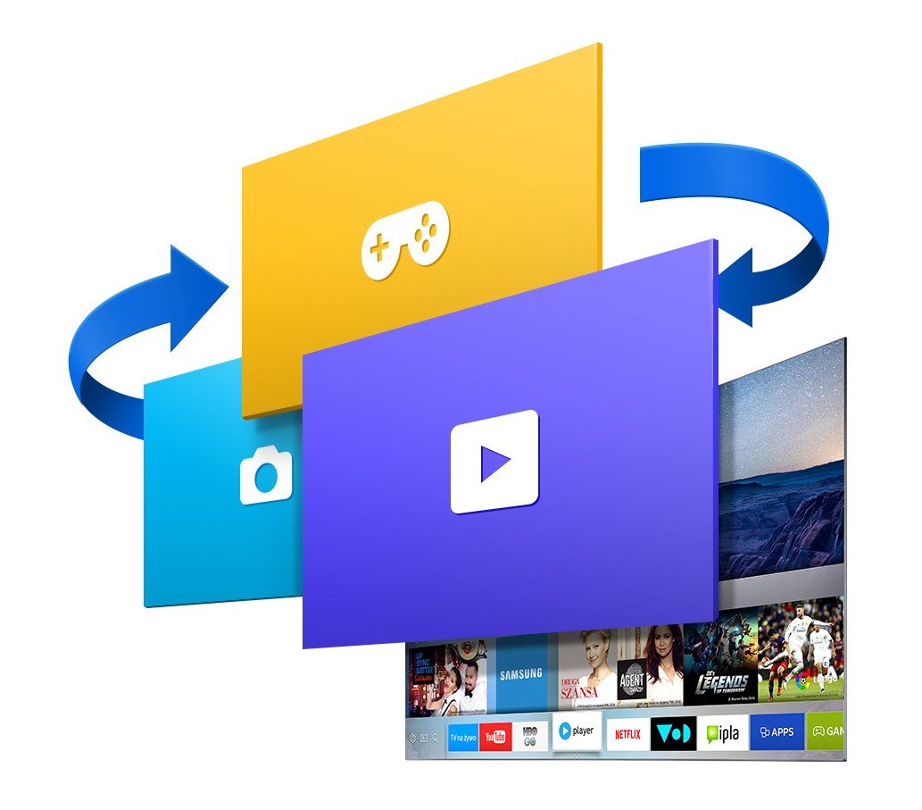 Większa wydajność Czterordzeniowy procesor przyspiesza działanie Samsung Smart TV. Telewizor szybciej reaguje na polecenia, a aplikacje działają znacznie płynniej. |