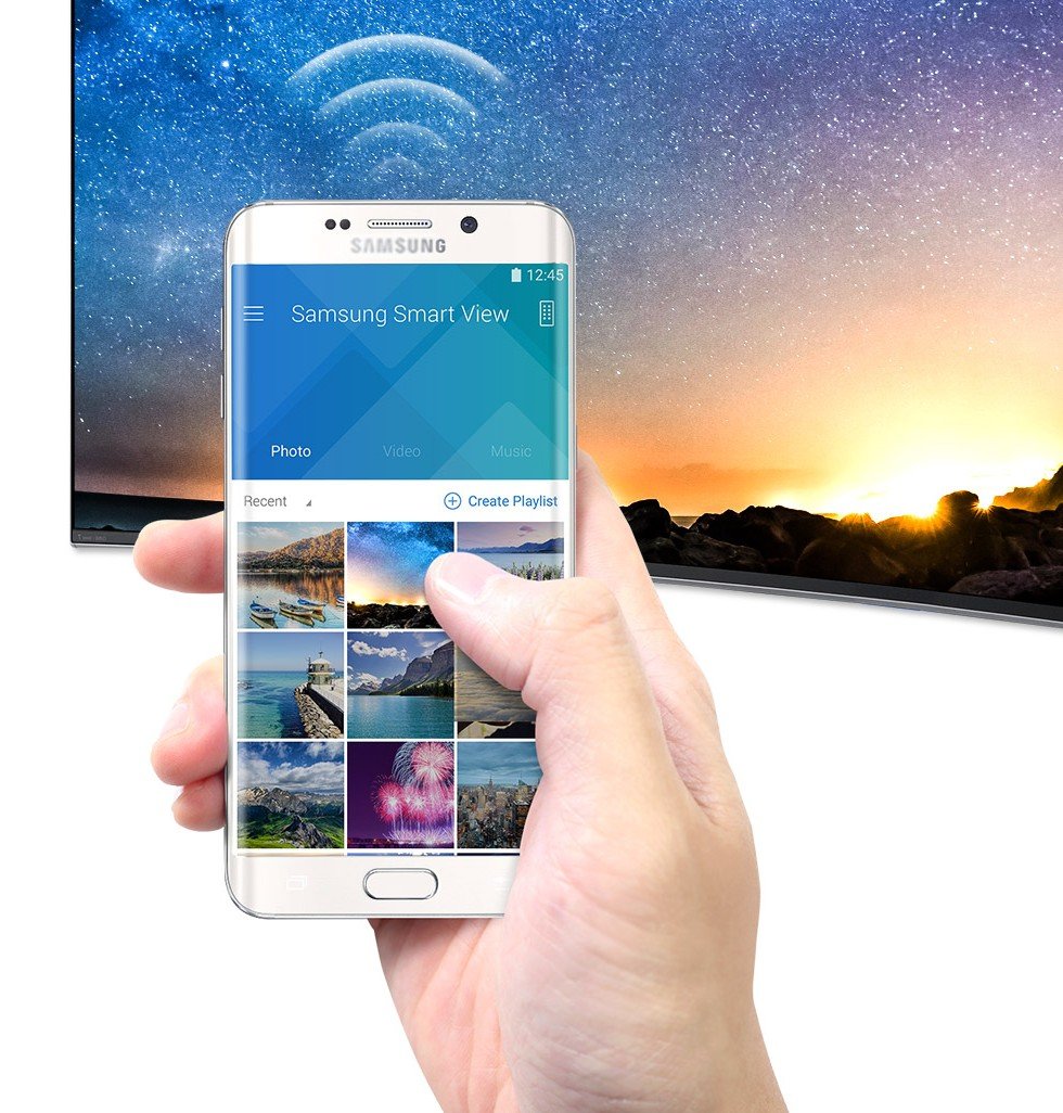 | Łatwe przesyłanie treści na ekran TV Odtwarzaj na ekranie Smart TV filmy, zdjęcia i muzykę z innych urządzeń. Skorzystaj z aplikacji Samsung Smart View lub z funkcji QuickConnect, aby łatwo połączyć z TV Twój smartfon czy tablet. |