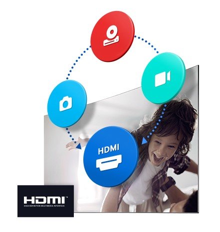 | Stwórz centrum domowej rozrywki Telewizor Samsung posiada wejścia HDMI, do których podłączysz różnego rodzaju urządzenia, takie jak dekoder, odtwarzacz czy konsola do gier. Z łatwością stworzysz swoje centrum najlepszej zabawy. |