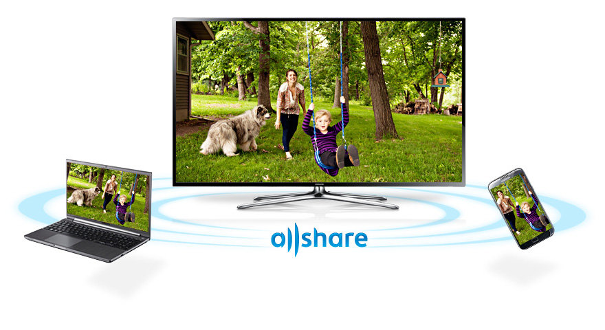 Łatwy dostęp do Twoich archiwów Rozwiązanie Samsung AllShare umożliwia stworzenie domowej sieci bezprzewodowej, w ramach której można udostępniać zawartość zapisaną w kompatybilnych urządzeniach marki Samsung, takich jak komputer czy aparat fotograficzny. Teraz możesz z łatwością przeglądać swoje zasoby, od zdjęć po muzykę, na ekranie swojego Samsung Smart TV.