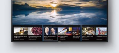 Dyskretny pasek zawartości umożliwia znalezienie wyszukiwanego filmu, programu lub wideo. Wywołaj go i przeglądaj kanały telewizyjne, materiały na życzenie, pobrane programy i inne treści, nie przerywając oglądania. Pasek możesz dostosować do swoich potrzeb, aby w pierwszej kolejności były wyświetlane materiały, z których najczęściej korzystasz. |
