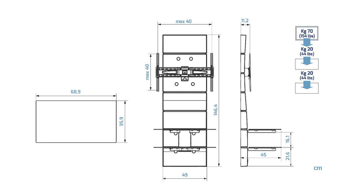 Każda z półek wytrzyma obciążenie do 20 kg.