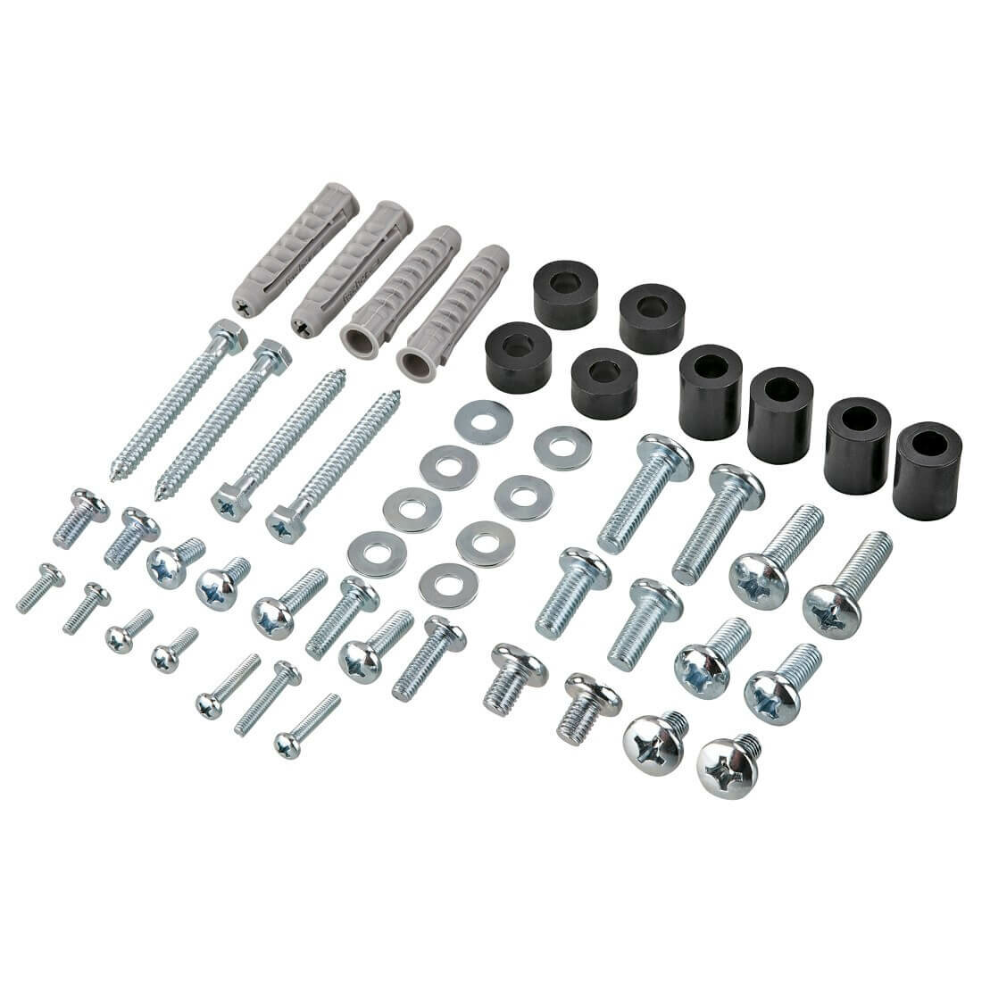 Uchwyt jest wyposażony w kompletny zestaw montażowy, w tym wysokiej jakości kołki rozporowe marki Fischer, a także szablon do wiercenia otworów. Dzięki temu montaż jest bardzo szybki i zapewnia stabilność telewizora.