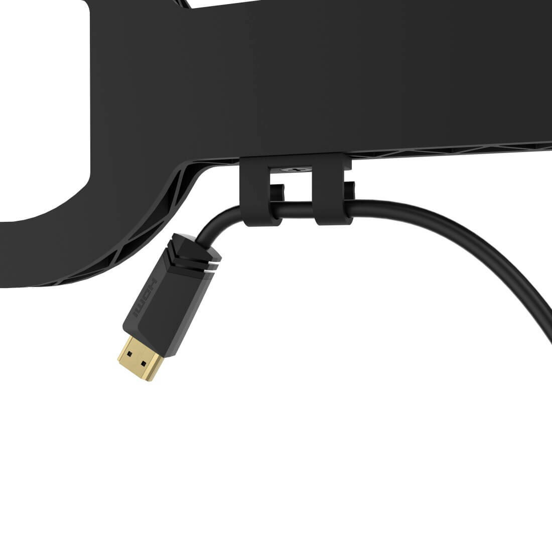 Uchwyt ścienny wyposażono w praktyczną zwijarkę do kabli, która ułatwia utrzymanie porządku w przewodach.