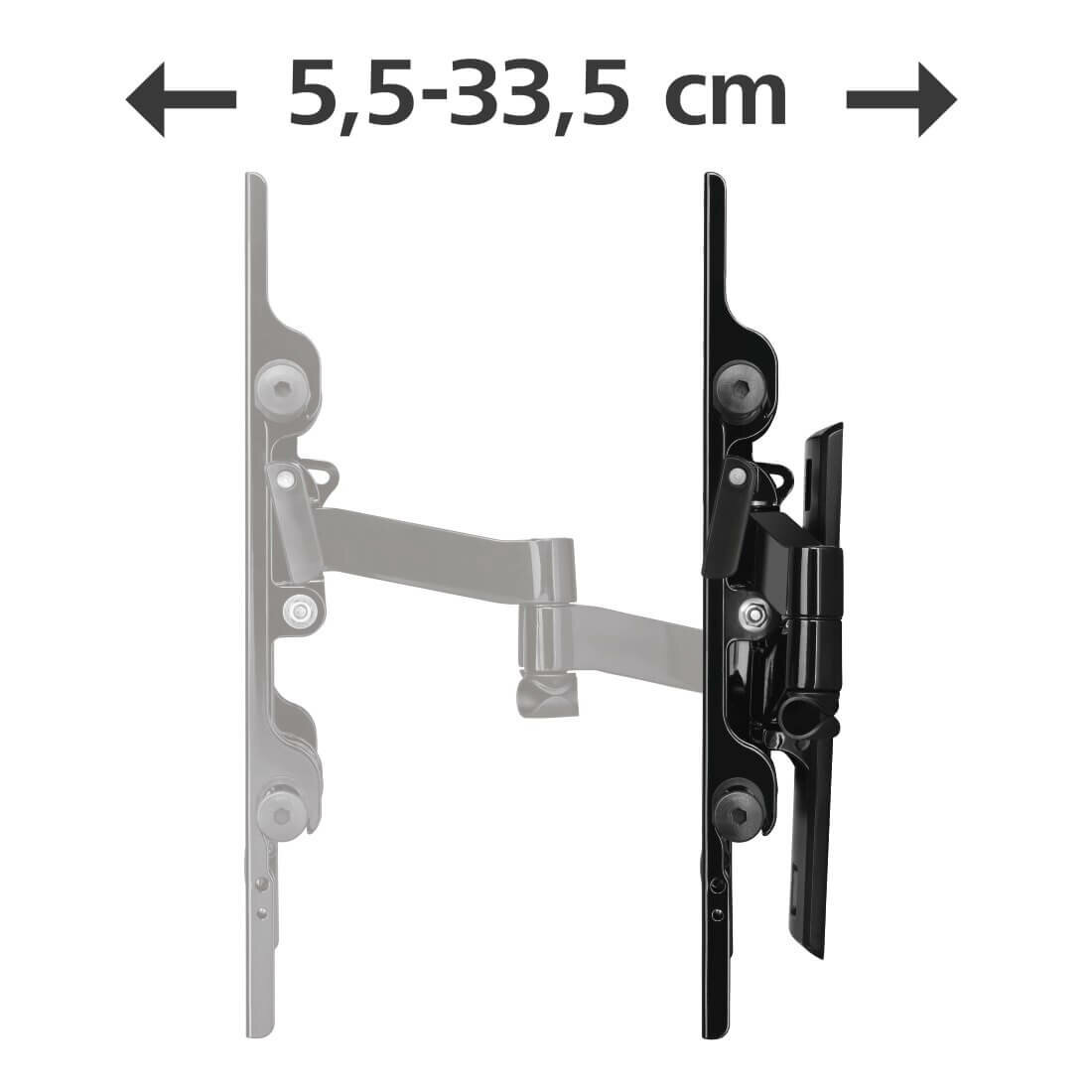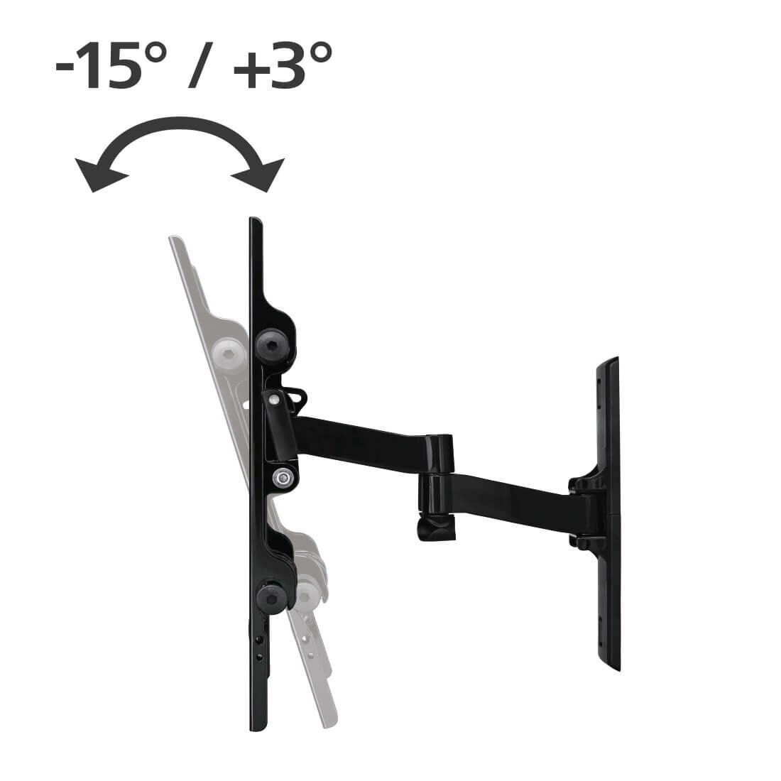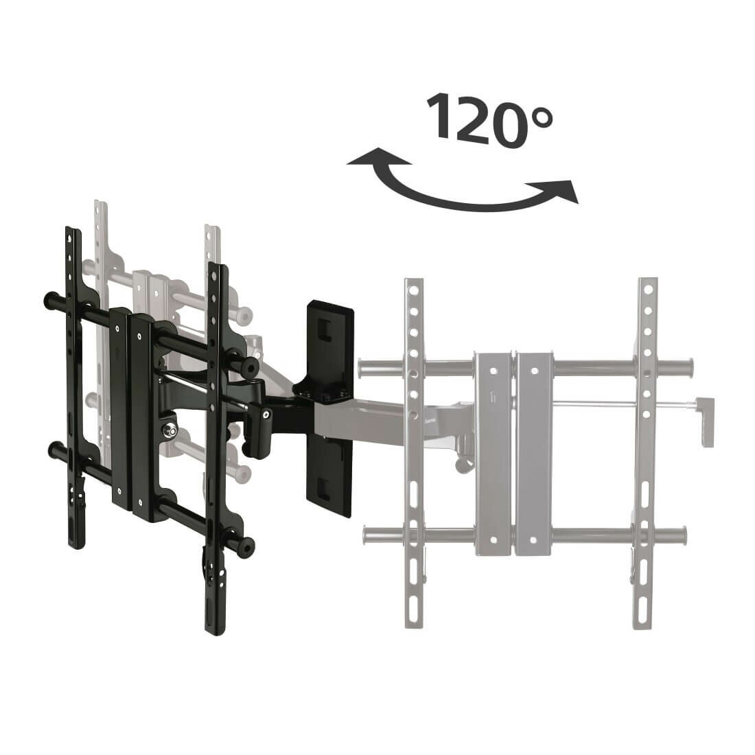 Uchwyt daje możliwość pełnej bezstopniowej regulacji położenia telewizora w systemie Easy Fix. Uchwyt pozwala na obrót z zakresie 120°, rotację do 3°oraz zmianę kąta pochylenia od – 15 do +3°. Telewizor może być zawieszony 5 ,5 cm od ściany lub wysunięty na ponad 30 cm. Tak duży zakres ruchomości pozwala na idealnie dopasowanie położenia ekranu.