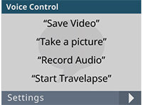 Sterowanie głosoweKamerę samochodową można obsługiwać za pomocą głosu, trzymając obie ręce na kierownicy. Powiedz „OK Garmin”, aby zapisać film, zrobić zdjęcie, rozpocząć lub zatrzymać rejestrowanie dźwięku, a także włączyć lub wyłączyć funkcję Travelapse.