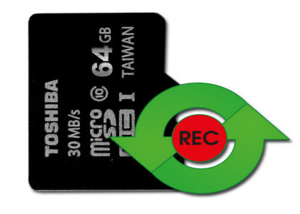 Kamera obsługuje karty microSD/SDHC/SDXC o pojemności nawet 64 GB (rekomendowane karty minimum klasy 10), a w przypadku zapełnienia karty pamięci, rejestrator automatycznie zacznie nadpisywać rejestrowany obraz na najstarszym materiale filmowym. Dzięki zastosowanemu czujnikowi przeciążeń G-sensor, w przypadku gwałtownego manewru lub kolizji, bieżący materiał zostanie automatycznie zabezpieczony przed nadpisaniem. |