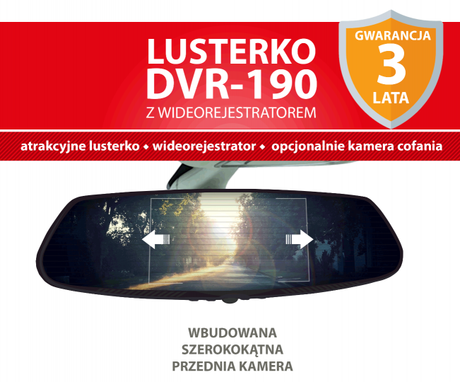 Lusterko wsteczne z wbudowaną kamerą samochodową DVR-190 marki VORDON. Obsługa kart pamięci microSD do 32 GB Rozdzielczość nagrywania filmu: 1080p / 720p / VGA |