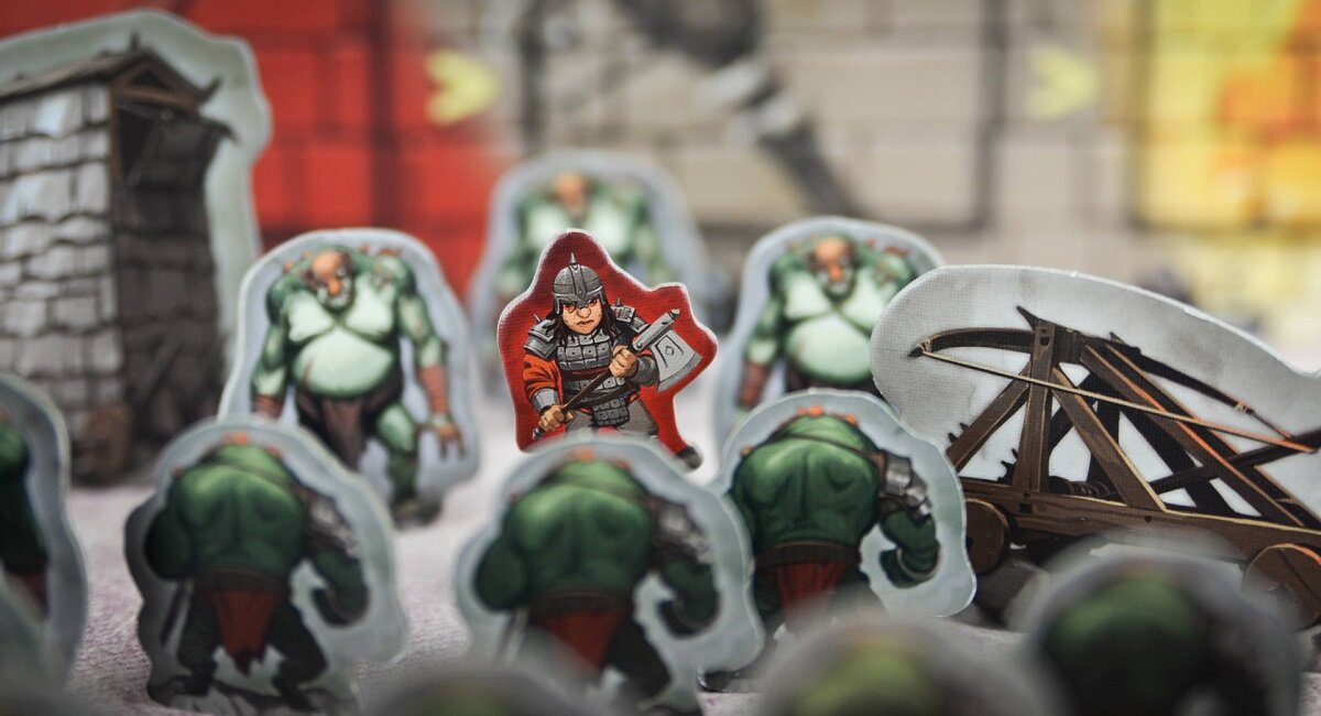 Jakość znajdujących się w opakowaniu elementów jest naprawdę świetna, w kartonowym pudełku znajdziemy ich całą masę: 1 plastikową twierdzę, 22 tekturowe figurki naszych bohaterskich krasnoludów a także trolli, goblinów i orków, 143 karty, które w trakcie rozgrywki budują nasze talie, 5 kości, 10 znaczników obrażeń, 25 żetonów wrogów, 22 plastikowe podstawki, 1 dwustronna plansza ulepszeń, ponad różnych 60 zasobów, w tym złoto i fragmenty gruzu.