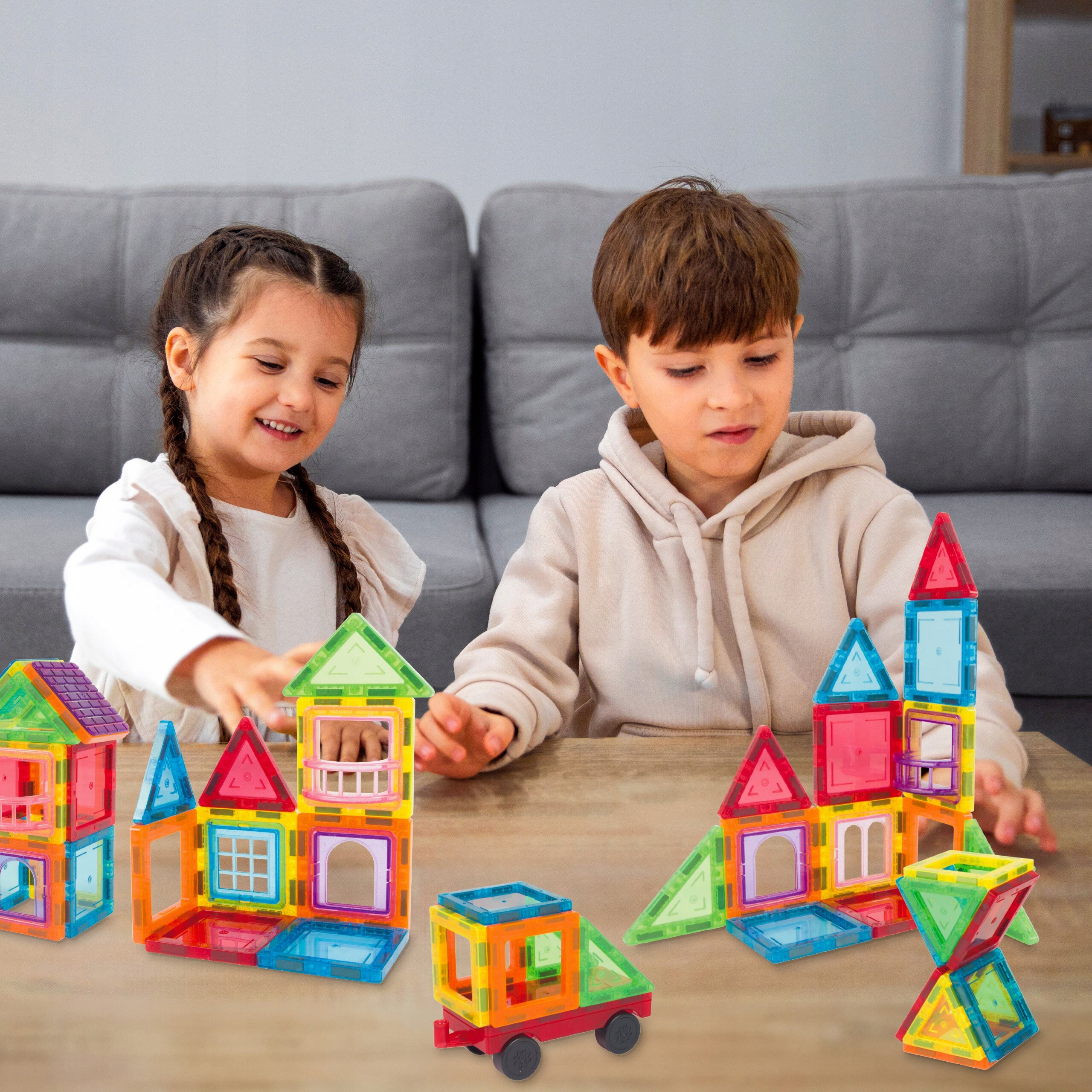 - Czy klocki są bezpieczne dla trzylatka? Tak, klocki przeznaczone są dla dzieci od 3. roku życia. Wykonane z nietoksycznych materiałów, z zaokrąglonymi krawędziami i bezpiecznie zabudowanymi magnesami.