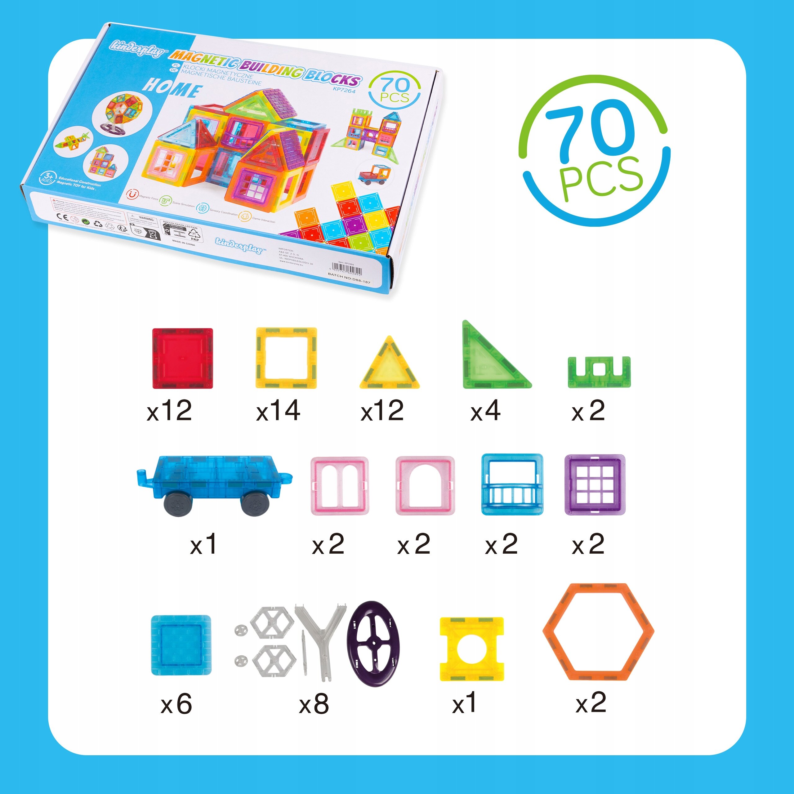 KLOCKI MAGNETYCZNE KONSTRUKCYJNE 3D DLA DZIECI 70 EL. EDUKACYJNE KINDERPLAY