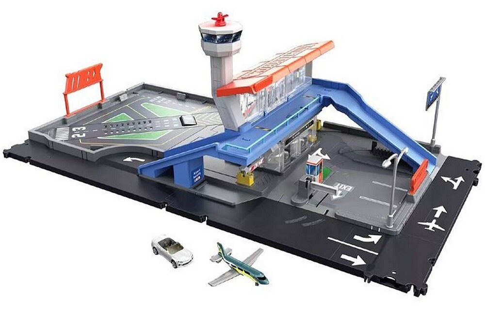 Lotnisko MATTEL Prawdziwe przygody HCN34 dzięki realistycznym detalom i ruchomym elementom oraz światełkom i dźwiękom poczujesz się jak na prawdziwym lotnisku. Używaj dołączonego pojazdu i samolotu, by odkrywać kolejne super funkcje: aktywuj bramkę przylotów, płytę lotniska, drzwi przesuwane i wieżę kontroli lotów. W zestawie znajdziesz też obracaną karuzelę bagażową i otwieraną bramkę. Zestaw zawiera jeden samolot Matchbox Sky Busters i jeden pojazd Matchbox. Doskonałe do zabawy dla dzieci od 3 roku życia. Lotnisko łączy się też z innymi zestawami Matchbox Action Drivers.
