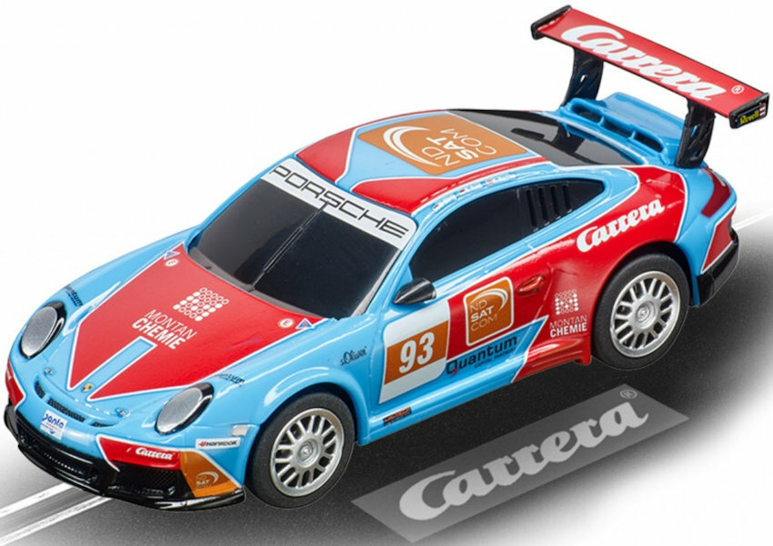 Porsche 997 GT3, to samochody najwyższej jakości dopracowane w najmniejszych szczegółach, z ogromną dbałością o detale. Wykonane zgodnie z licencją wyścigówki posiadają oryginalne nadruki oraz szczotki stykowe. To system startowy do Świata Wyścigów Carrera, stworzony w skali 1:43.