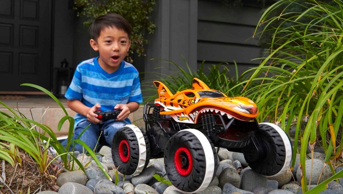 Dzieci i fani programu Monster Trucks Live mogą odtwarzać swoje ulubione momenty z pojazdem Tiger Shark, a dzięki częstotliwości 2,4 GHz można się nim bawić bez zakłócania pracy innych zdalnie sterowanych pojazdów. (Dodatkowe pojazdy sprzedawane oddzielnie). Niepowstrzymany Tiger Shark™ Hot Wheels® Monster Trucks to epicki prezent dla fanów zdalnie sterowanych pojazdów i dzieci od 4 roku życia.