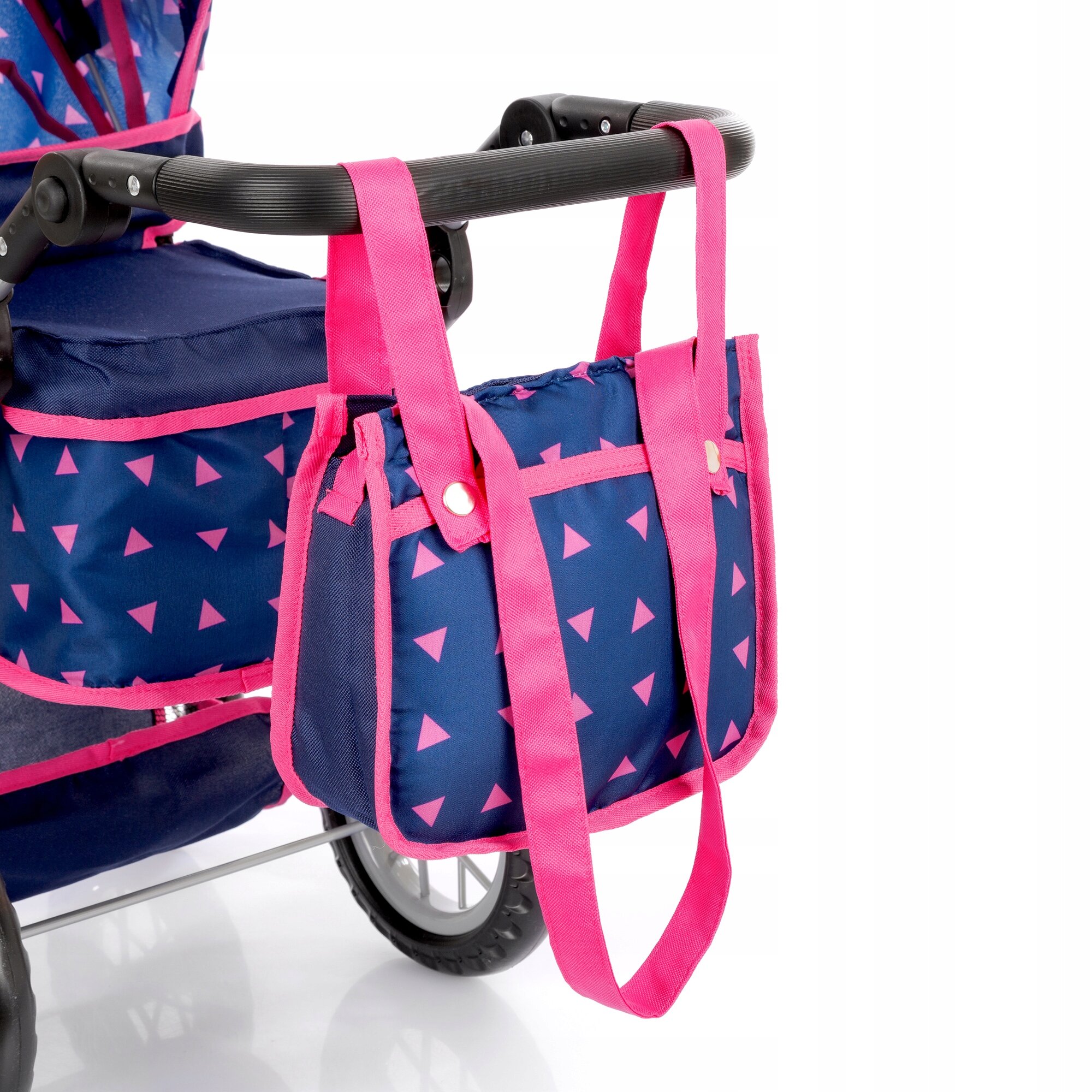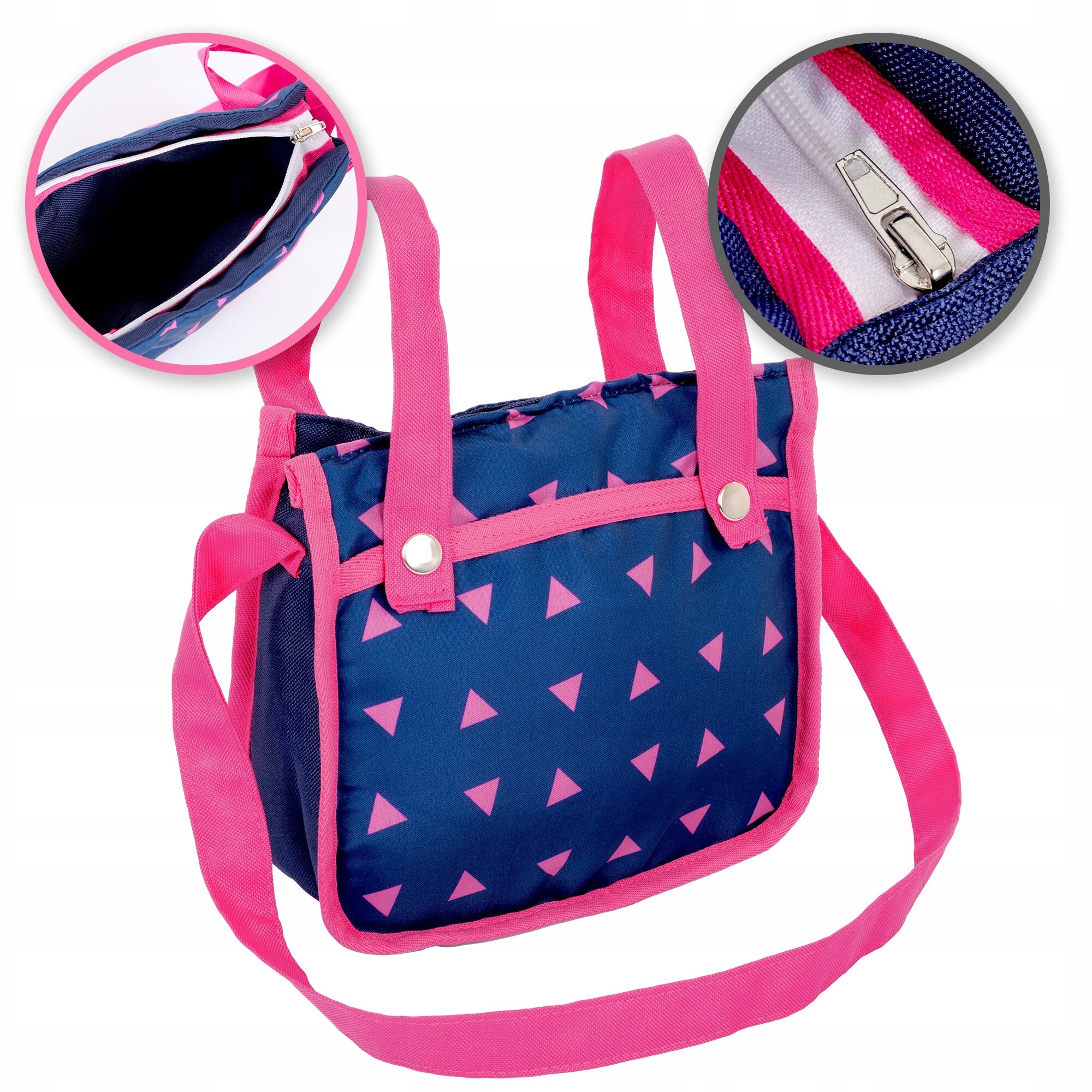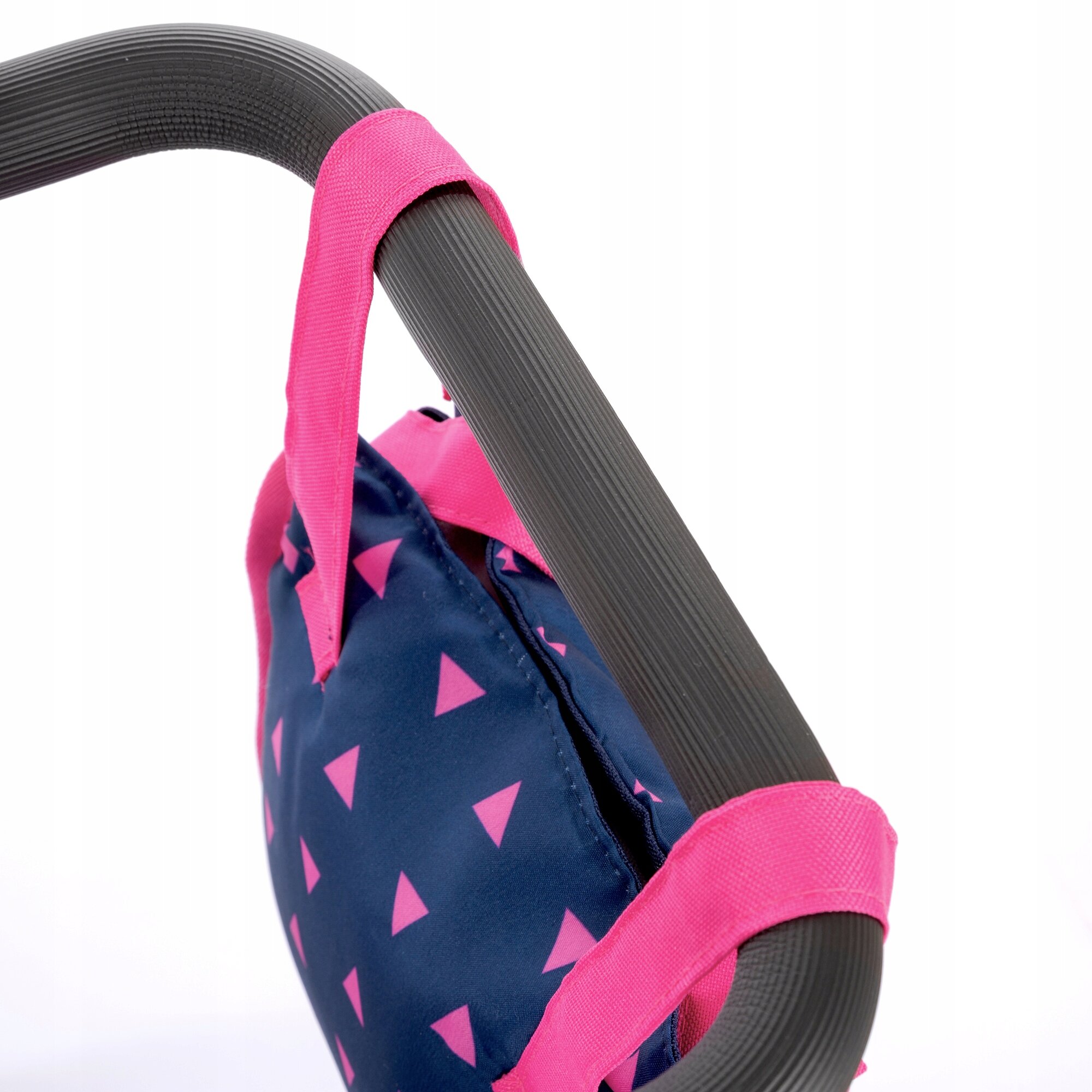 Torba może być przymocowana do rączki wózka. Dziewczynka może również zawiesić ją na ramię lub nieść w dłoniach.