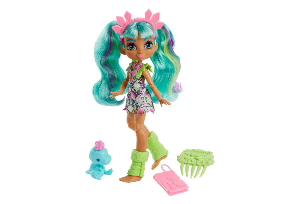 Przenieś wyobraźnię w prehistoryczne czasy i odkryj nowe historie z lalkami serii Cave Club od MATTEL. Wybierz ulubioną lalkę lub zbierz je wszystkie, bo w grupie jest weselej! W zestawie znajdziesz lalkę - jaskiniowca, o włosach w kolorze morskim, kolorowym ubraniu i wyróżniającym ją makijażu, w towarzystwie swojego ukochanego prehistorycznego zwierzaka.