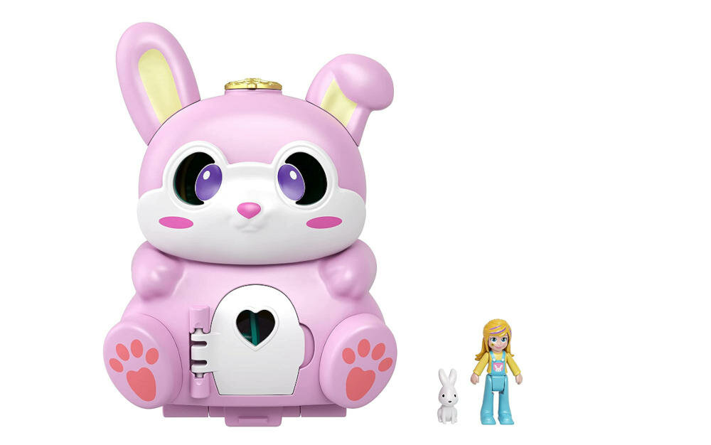 Poznaj wspaniałą serię Polly Pocket - domek króliczek od MATTEL! Dzieci pokochają ten mini zestaw w kształcie króliczka. Otwiera się on w tradycyjny sposób oraz o 270 stopni. Po otwarciu ukazuje uroczy domek z drzwiczkami z przodu, które można otworzyć. Czas zacząć wspaniałe przygody!