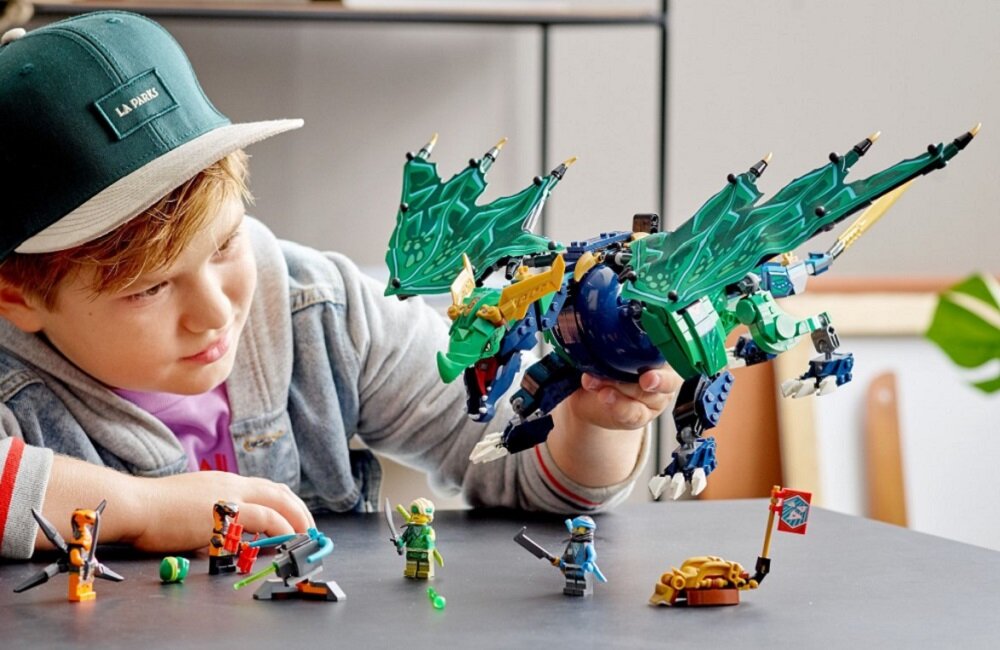 Zestaw LEGO Ninjago Legendarny smok Lloyda 71766 nie zawiera żadnych elementów elektronicznych, więc nie działa na baterie. Zabawa toczy się zatem pod dyktando dziecięcej wyobraźni i może trwać i trwać. Dziecko nie tylko ma frajdę, ale też podczas zabawy uczy się zażegnywać problemy, zręcznie poruszać się figurkami i budować obiekty.