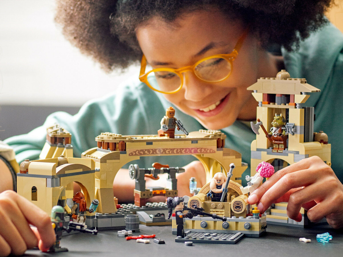 LEGO® Star Wars Sala tronowa Boby Fetta 75326 z serialu "Star Wars: The Book of Boba Fett" pozwoli na nowo rozpocząć przygodę z Gwiezdnymi Wojnami. Złóż model, żeby wkroczyć do sali tronowej, kuchni czy miejsca na grilla. A to dopiero początek.