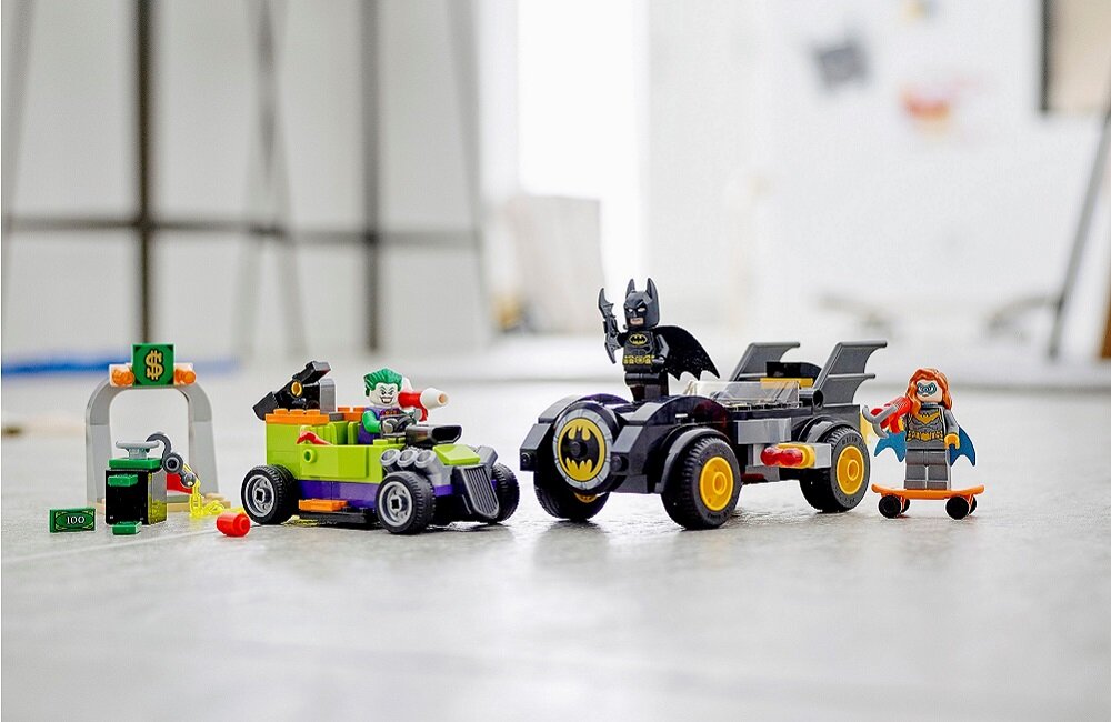 Zestaw składa się z 136 elementów. Dzięki temu wprowadza malucha w świat złożonych konstrukcji i podstaw inżynierii. Klocki mają specjalne podwozie startowe, dzięki temu proces tworzenia modelu staje się jeszcze łatwiejszy. Dziecko odkryje w pudełku nie tylko ulubionych superbohaterów, ale także wiele funkcji. Jest tam między innymi wyrzutnia liny z hakiem i broń zamontowana na Batmobilu. W komplecie minifigurki Batmana, Batgirl i Jokera, Batmobil do zbudowania z klocków, zwariowany hot rod oraz sporo innych autentycznych elementów.