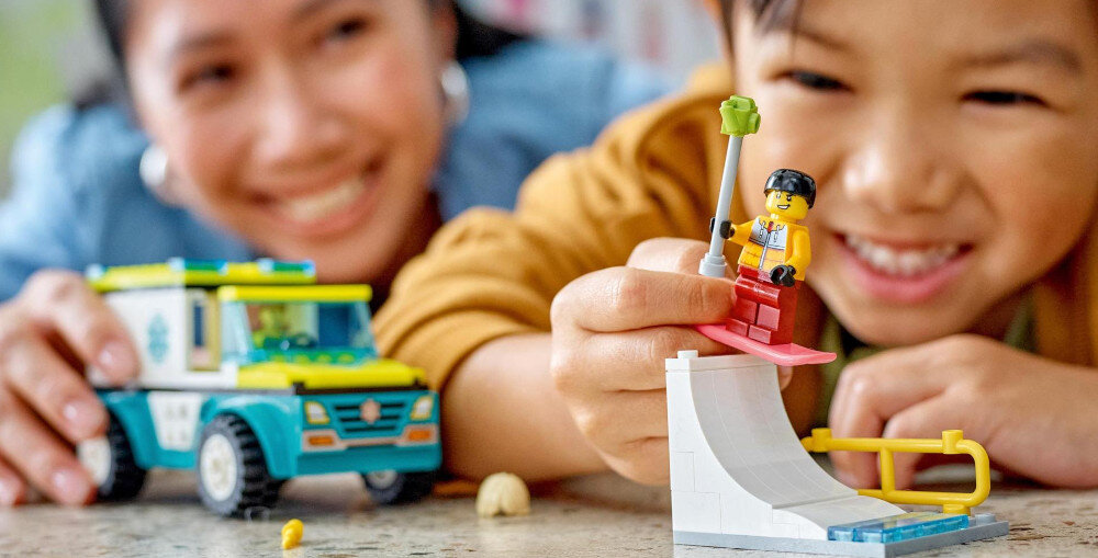 Zaproś dzieci do świata twórczej zabawy, dzięki temu kreatywnemu zestawowi konstrukcyjnemu LEGO® City Karetka i snowboardzista. Miłośnicy pojazdów ratunkowych będą zachwyceni tym zestawem.