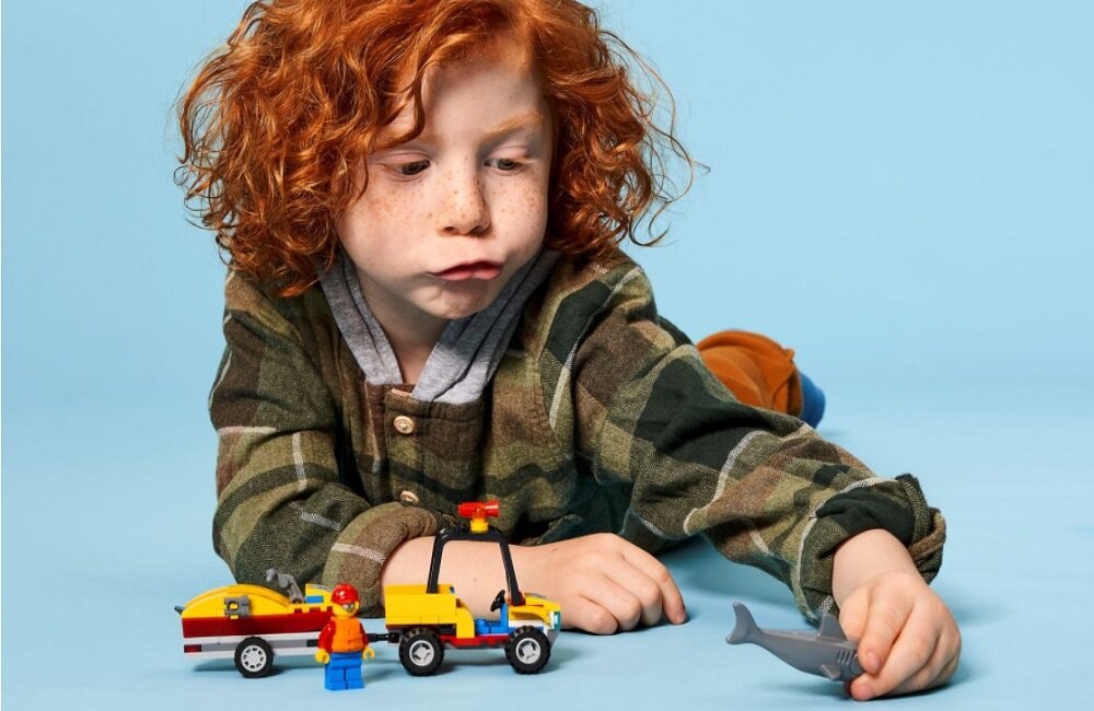 Zabawka LEGO City Plażowy quad ratunkowy 60286 zapewni dziecku wiele godzin fantastycznej zabawy i pozwoli kształtować cenne umiejętności. Zestaw składa się 79 elementów, przeznaczonych do złożenia wspaniałej konstrukcji. Budowanie z klocków lego gwarantuje nie tylko cudowną rozrywkę, ale sprawia, że pociecha poznaje podstawy inżynierii i zasady działania różnych mechanizmów. W pudełku znajduje się model quada z otwierającą się klatką bezpieczeństwa, skuter wodny, a także przyczepa do jego przewożenia. Ważnym elementem całości jest też minifigurka ratownika i rekina. Dzięki temu maluch może od razu wyruszyć na spotkanie z morską przygodą.