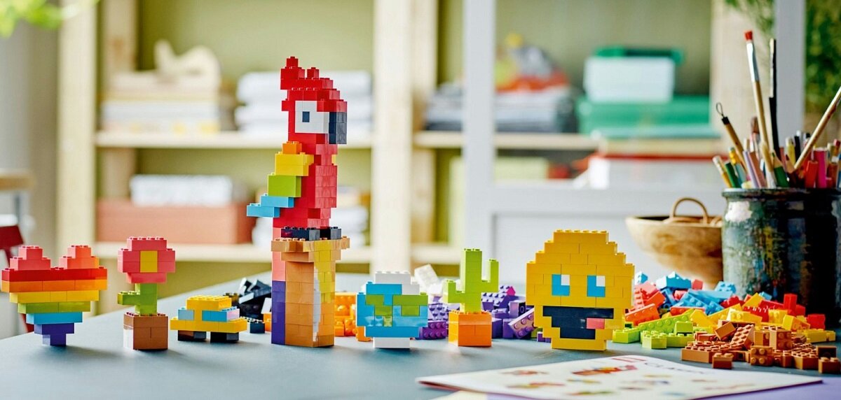 Szczególną uwagę zwraca oryginalny i bardzo popularny klocek 2x4! Zestaw zawiera czytelne, drukowane instrukcje budowania zabawnych modeli, w tym samochodu, globusa, kwiatka, serca, gitary, domu, emoji, papugi, psa i jabłka. Ten zestaw ma zachęcać do swobodnej, kreatywnej zabawy. Zawiera nawet broszurę pełną instrukcji budowania i sugestii dla młodych budowniczych. Cyfrowe instrukcje można również znaleźć w aplikacji LEGO Builder.
