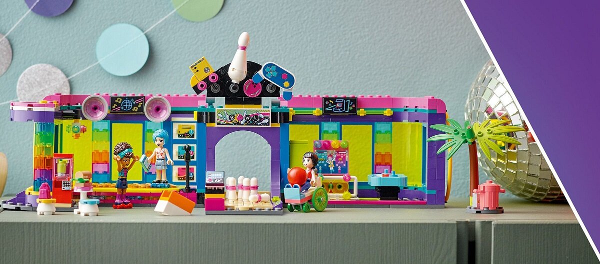 Model zawiera trzy aktywności: dyskotekę na wrotkach, kręgielnię i strefę gier. Ponadto w zestawie są trzy postacie LEGO Friends.