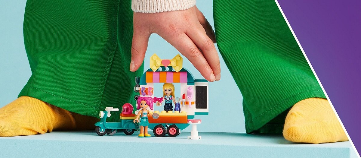 Prezent dla młodych fanów mody zawiera Stephanie i Camilę z LEGO Friends, a także mobilny butik do zbudowania i odczepiany skuter elektryczny. Mali styliści mogą zafundować metamorfozę swoim znajomym i sprzedawać modowe akcesoria klientom w mobilnym butiku, który da się przyczepić do elektrycznego skutera.