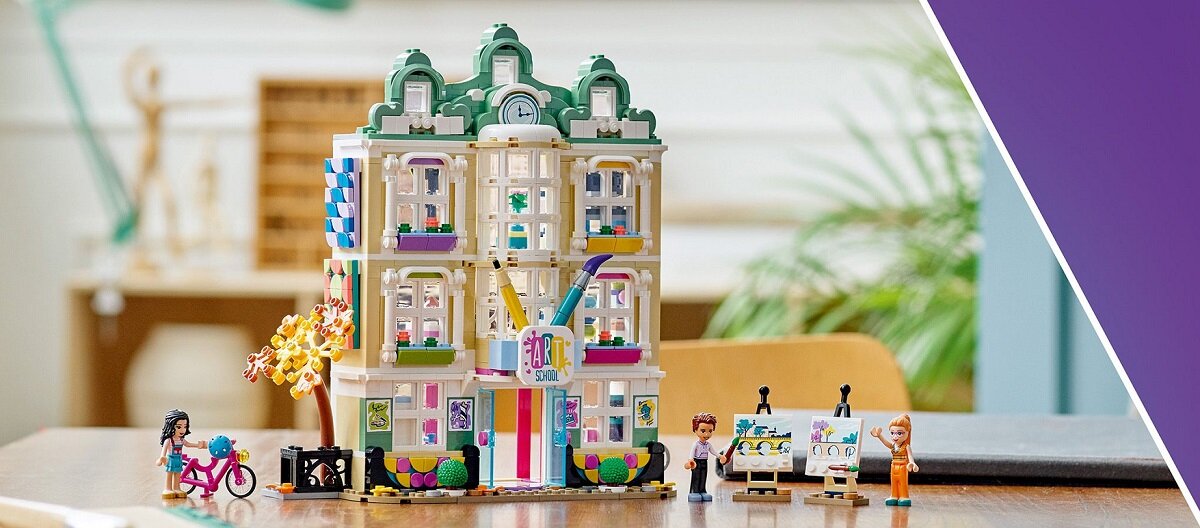 Pozwól dzieciom wyrazić swą kreatywność dzięki zestawowi LEGO Friends Szkoła artystyczna Emmy 41711, w skład którego wchodzą cztery pracownie artystyczne.