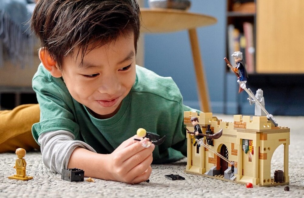 Szukasz ekscytującej zabawki dla fanów Harry’ego Pottera? Zestaw LEGO Harry Potter Hogwart Pierwsza Lekcja Latania 76395 pozwala dzieciom ćwiczyć latanie na miotle i trenować quidditcha, a ponadto można go bez końca przebudowywać. Zestaw jest częścią kolekcji bogatych w autentyczne szczegóły zestawów modułowych, które dzieci mogą budować, łączyć i przebudowywać, by stworzyć własny model zamku Hogwart.