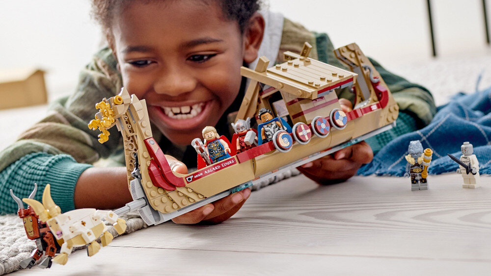 W zestawie LEGO Marvel Kozia łódź znajduje się nie tylko tytułowa łódź, ale również minifigurki cenionych postaci. Dziecko może zamienić się Thoria, potężną Walkirię, Gorra lub Korga. Może także korzystać z ich broni!