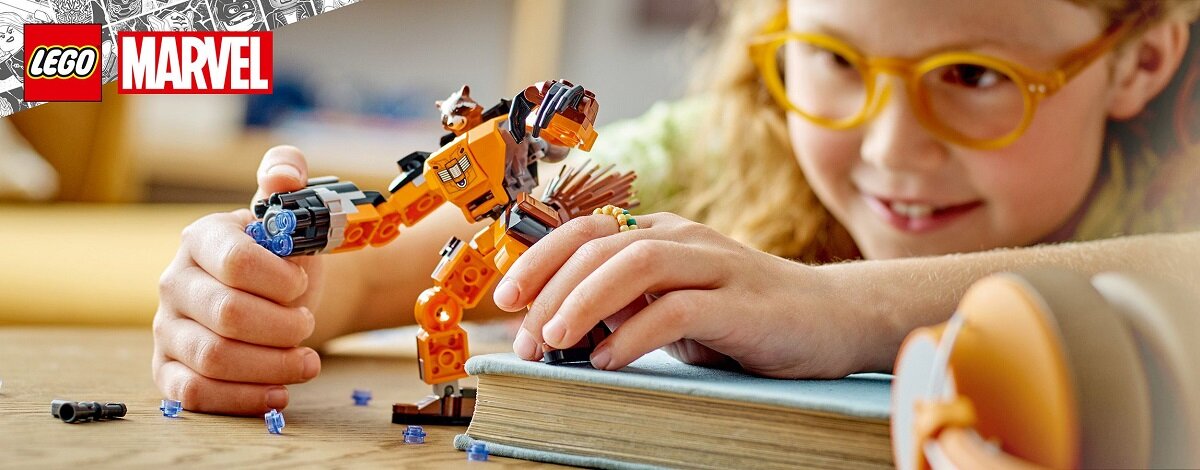 Fani „Strażników Galaktyki” Marvela z pewnością pokochają zestaw LEGO® Marvel Mechaniczna zbroja Rocketa (76243). Szalony szop w kokpicie tej wielkiej figurki to potężna maszyna bitewna. Zestaw składa się z 98 elementów i jest przeznaczony dla dzieci powyżej 6 roku życia.