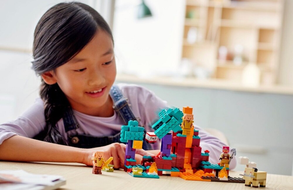 Zabawka Spaczony las od LEGO Minecraft składa się z 287 elementów. Otwierając pudełko, dziecko znajdzie tam części pozwalające na stworzenie wspaniałej konstrukcji, co obudzi w nim prawdziwą pasję tworzenia. Opakowanie zawiera cztery figurki: łowczynię z łukiem, strzałą i ochronną zbroją, hoglina z ruchomą głową oraz dwa pigliny z mieczem. Są tam także wbudowane funkcje wybuchu lawiny i kamieni. Dzięki temu dziecko ma wszystko, co trzeba, aby poznać tajniki budowy złożonej makiety.