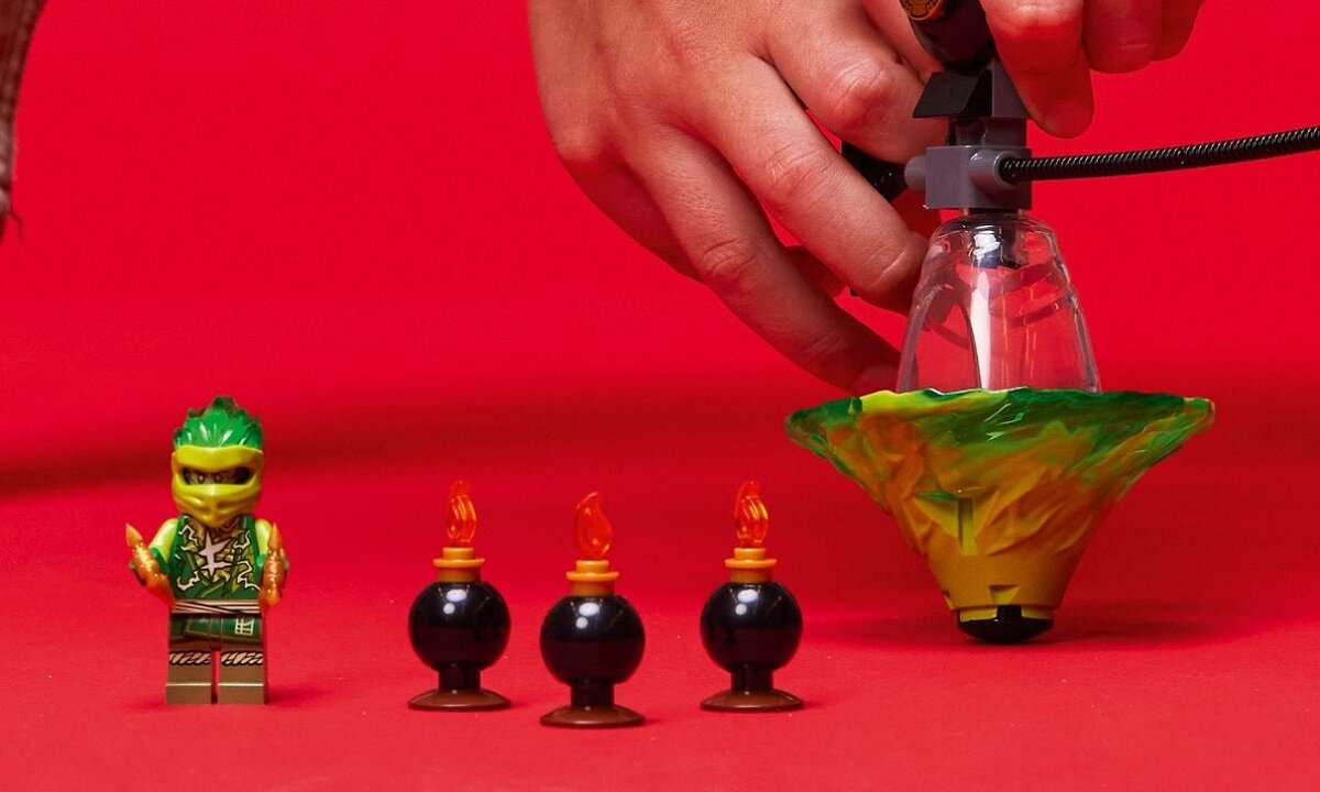 Dzieci mogą umieścić Lloyda w obrotowej zabawce, pociągnąć linkę i popatrzeć, jak szybko się obraca albo próbuje ominąć trzy płonące bomby. Minifigurka Lloyda ma wyjątkowy, dotąd niespotykany nadruk mocy żywiołu (nowość na marzec 2022 r.).