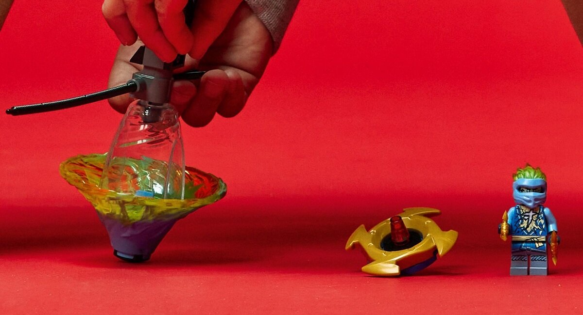 Dzieci mogą umieścić Jaya w obrotowej zabawce, pociągnąć linkę i popatrzeć, jak szybko obraca się na płaskiej powierzchni albo na swojej wysokiej wieży do ćwiczenia równowagi. Minifigurka Jaya ma wyjątkowy, dotąd niespotykany nadruk wspaniałej mocy żywiołu (nowość na marzec 2022 r.).