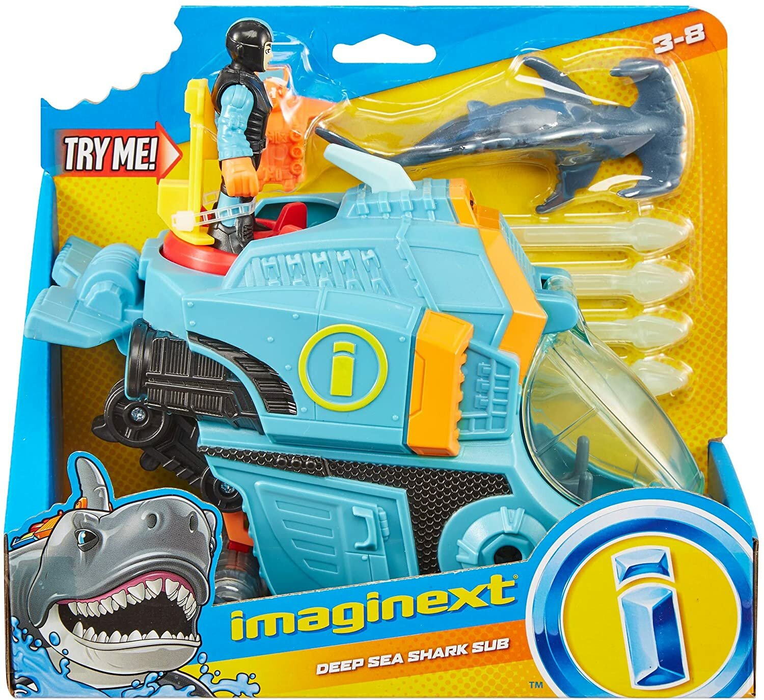 Zbierz wszystkie zestawy, by przeżyć pełne akcji przygody na dnie morza! Zanurz się w świecie przygód z tymi pełnymi akcji morskimi zestawami Imaginext. W każdym zestawie jest figurka nurka, rekin i świetne akcesoria pobudzające wyobraźnię, dzięki którym zabawa jest jeszcze bardziej ekscytująca. Zbierz wszystkie zestawy, by przeżyć pełne akcji przygody na dnie morza! (Zestawy sprzedawane oddzielnie w zależności od dostępności). Imaginext Zabawa z wyobraźnią!