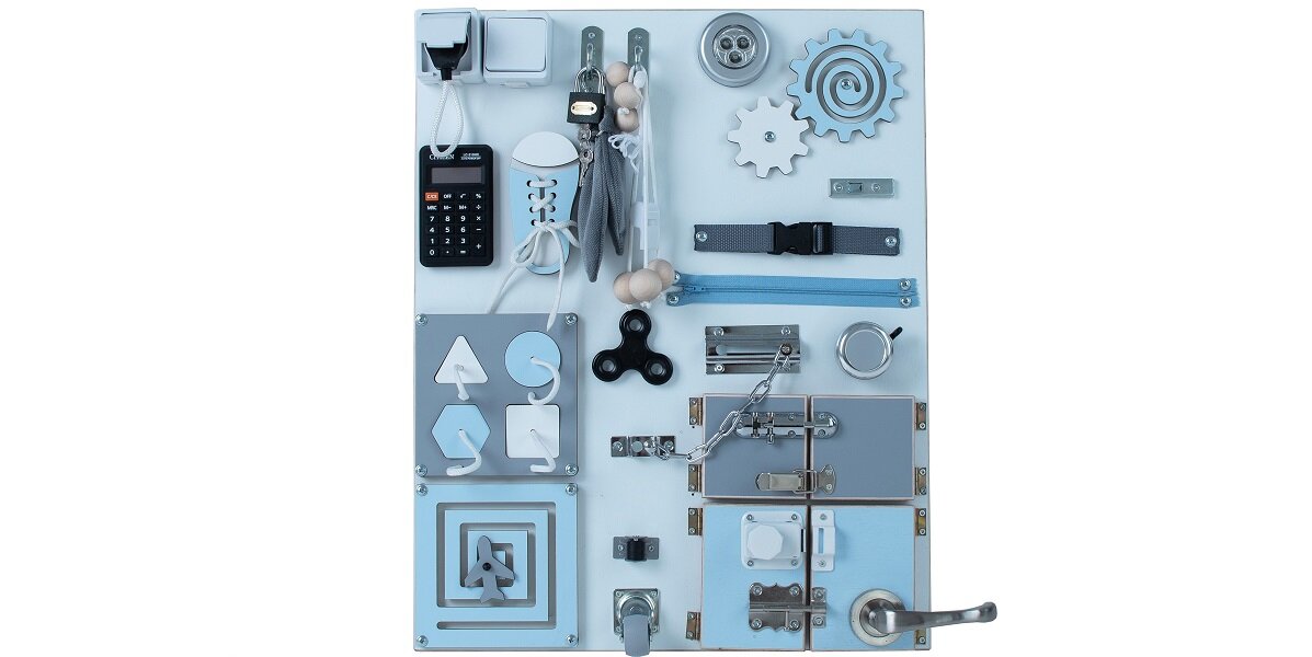 Na tablicy montessori znajdują się różnorodne zamki, rurki, okienka, pokrętła, klocki, przyciski oraz inne akcesoria. Dziecko podczas zabawy poznaje więc nowe kształty oraz materiały, dlatego tablica jest zabawką edukacyjną, a przecież nie ma przyjemniejszej nauki niż poprzez zabawę.