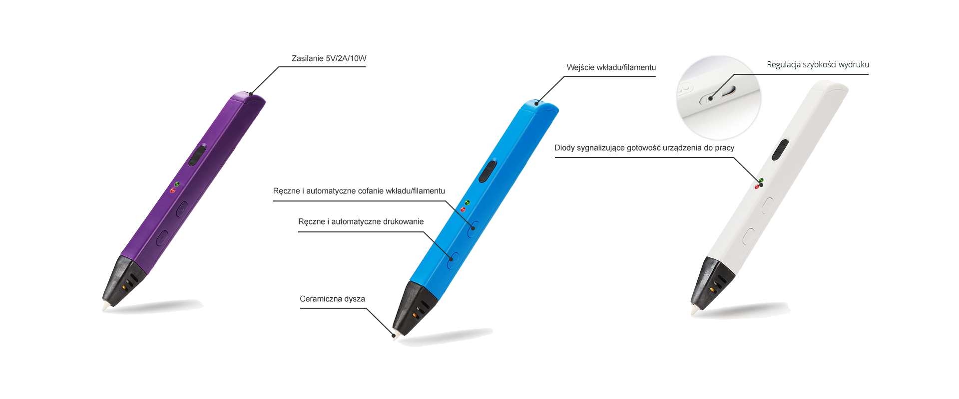- Długopis 3D ART Wooler 3D Slim ABS, Średnica dyszy 0.6 mm Biały
