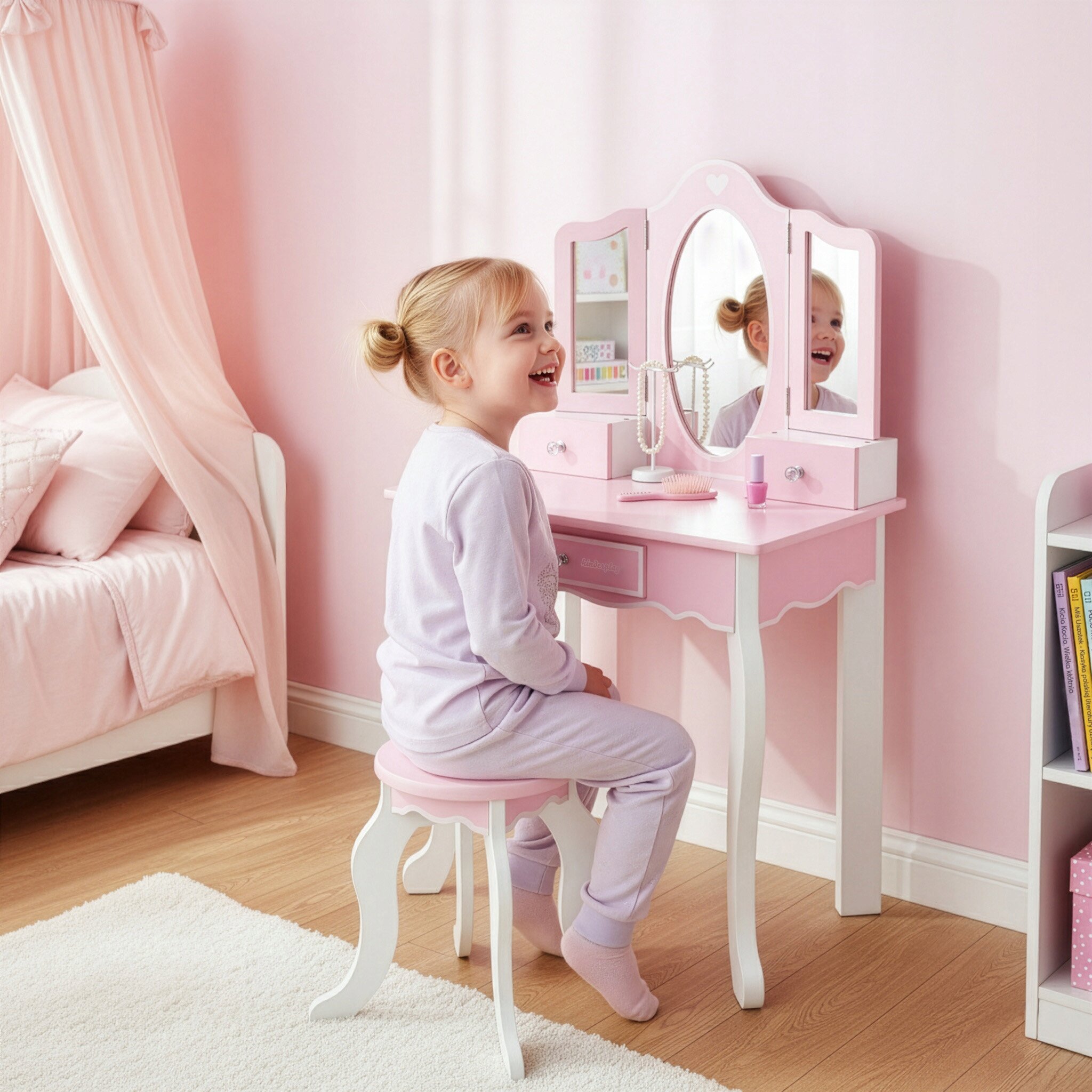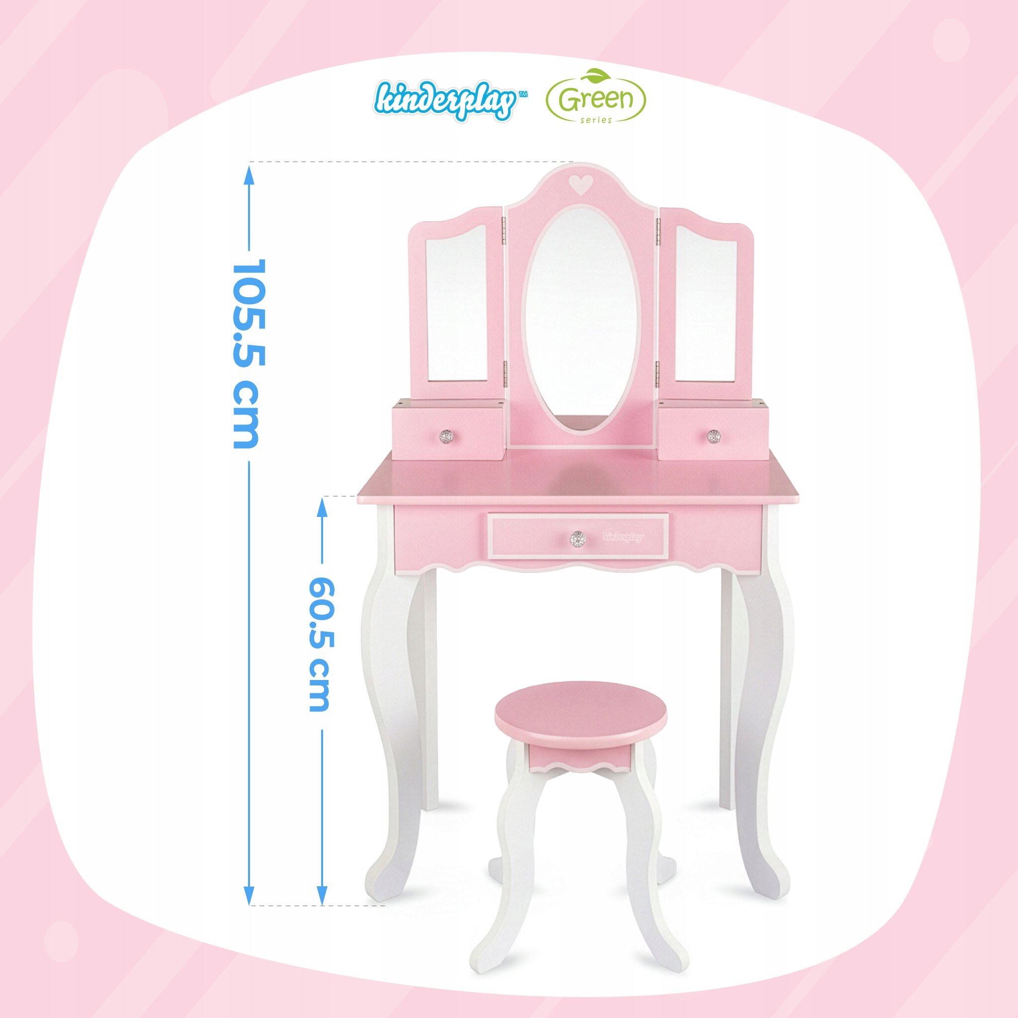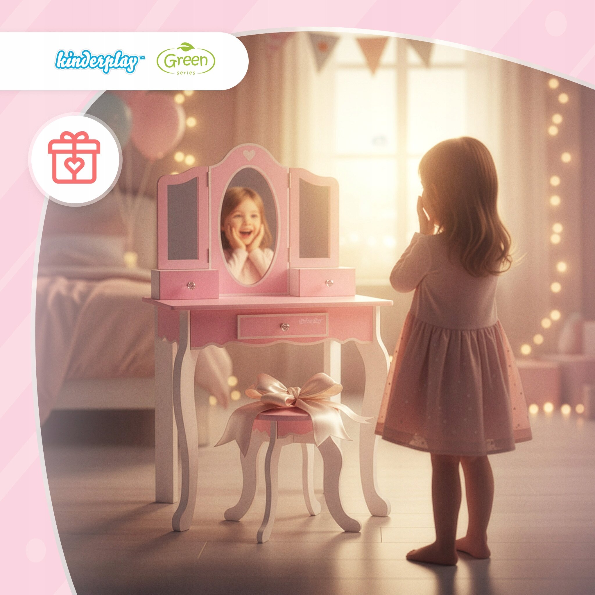Drewniana toaletka Kinderplay to wymarzony prezent dla każdej dziewczynki. Łączy w sobie piękny wygląd i funkcjonalność, gwarantując radość i mnóstwo kreatywnej zabawy.