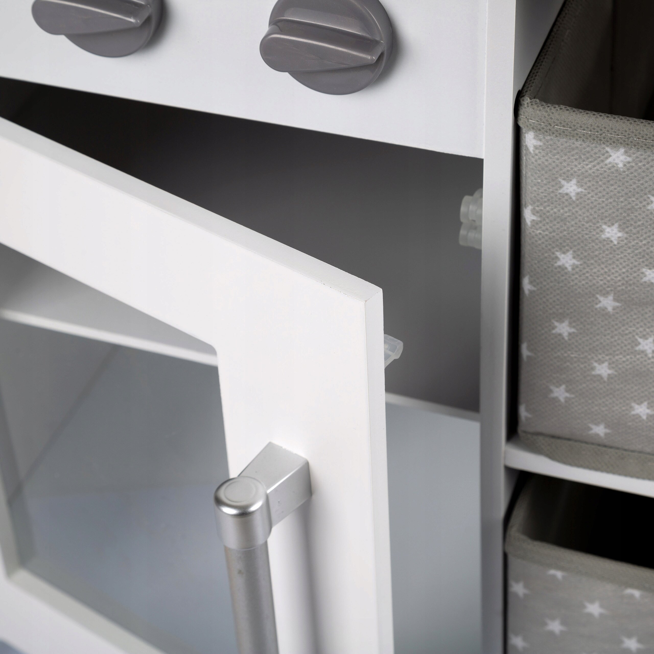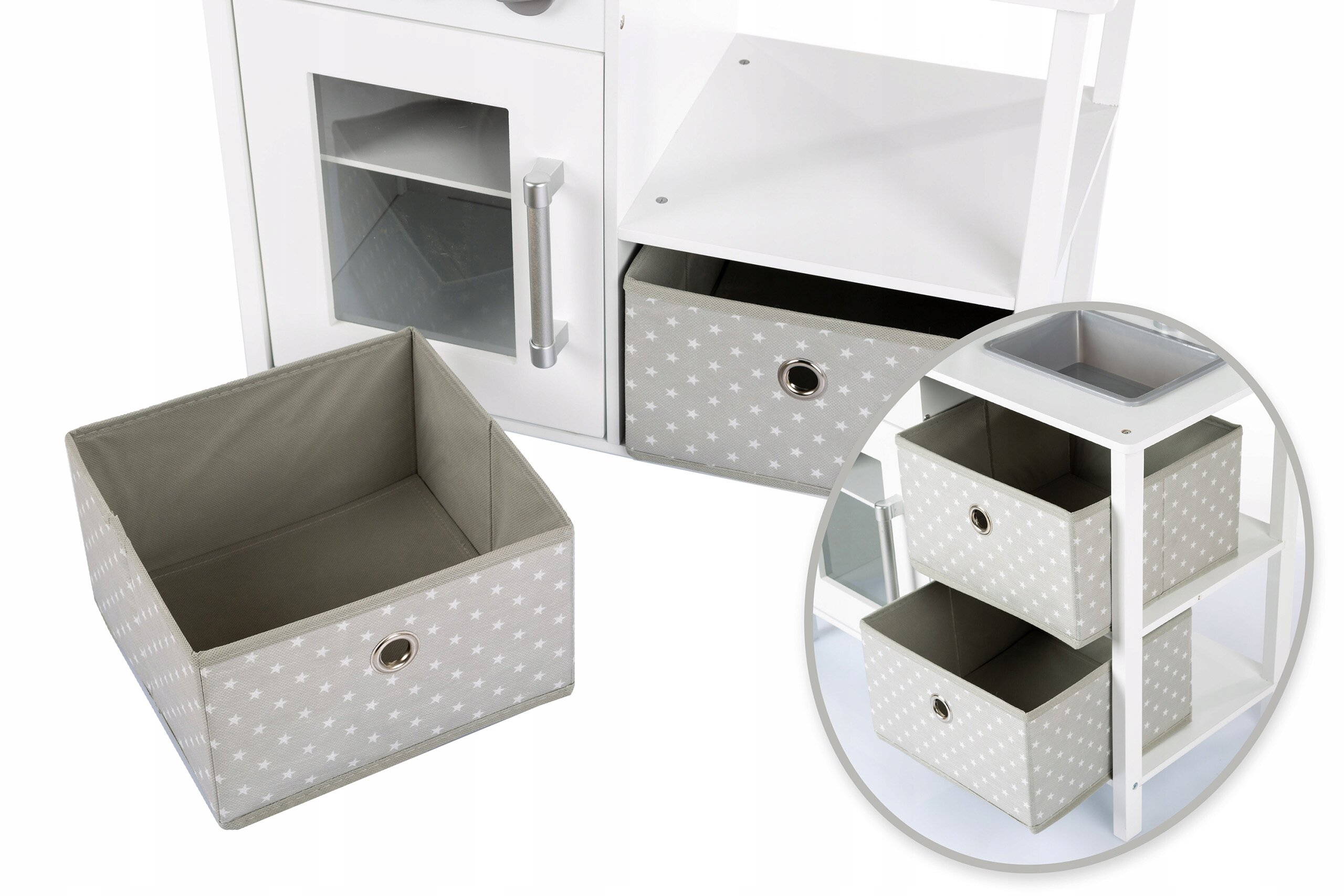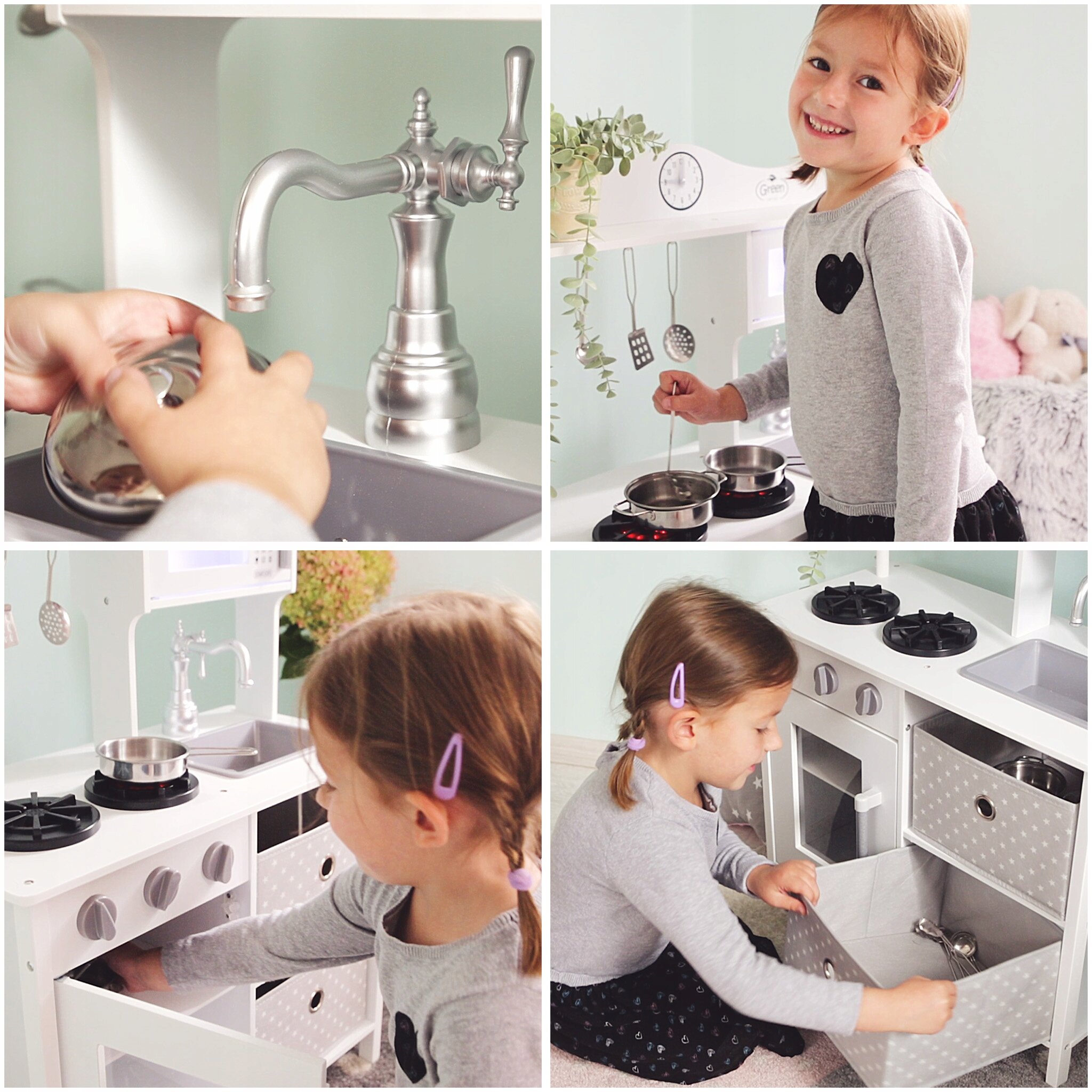 Elegancka kolorystyka oraz dopracowane detale sprawiają, że kuchnia będzie świetnie prezentować się nie tylko w pokoju dziecięcym, ale także w salonie. Wszystkie elementy pokryte są bezpiecznymi dla dzieci farbami ekologicznymi.